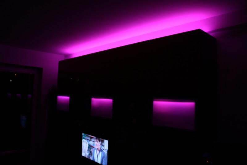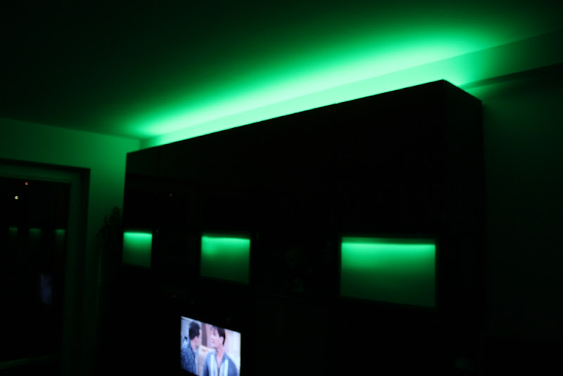Verwendet habe ich ca. 4,5m vom Flexband (Netzteil = Hipro). Diese habe ich hinter den Milchglasscheiben und an der oberseite der Wohnwand angebracht:[Blockierte Grafik: http://lh4.ggpht.com/_hKoxmVezgw4/Syup8MO8YoI/AAAAAAAAAjA/8zyAuwI0ycc/s800/IMG_2121.JPG]