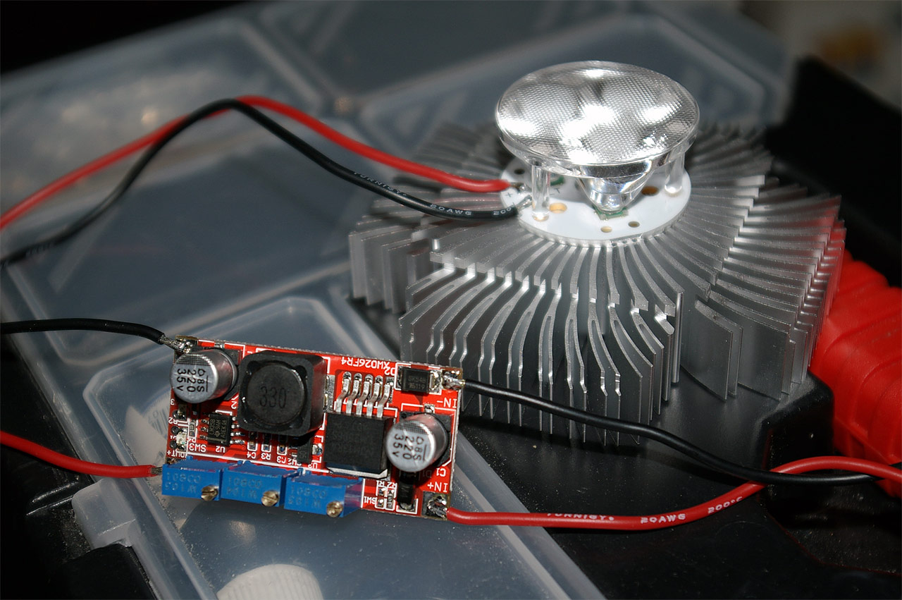 Im geschlossenen Zimmer kann man für den Dauerbetrieb ca. 1A geben und der CPU Kühler erreicht dann ca. 30-40°C. Da der Spannungswandler auf der KSQ nicht gekühlt ist, sollte man auch nicht mehr geben (sind ca. 8,6Watt die dann durch die LEDs gehen). Für die KSQ habe ich mir so kleine, selbstklebende VGA Ramkühler bestellt, dann sollten 2A zumindest im Flugwind kein Problem sein und nochmal mehr Helligkeit bringen.